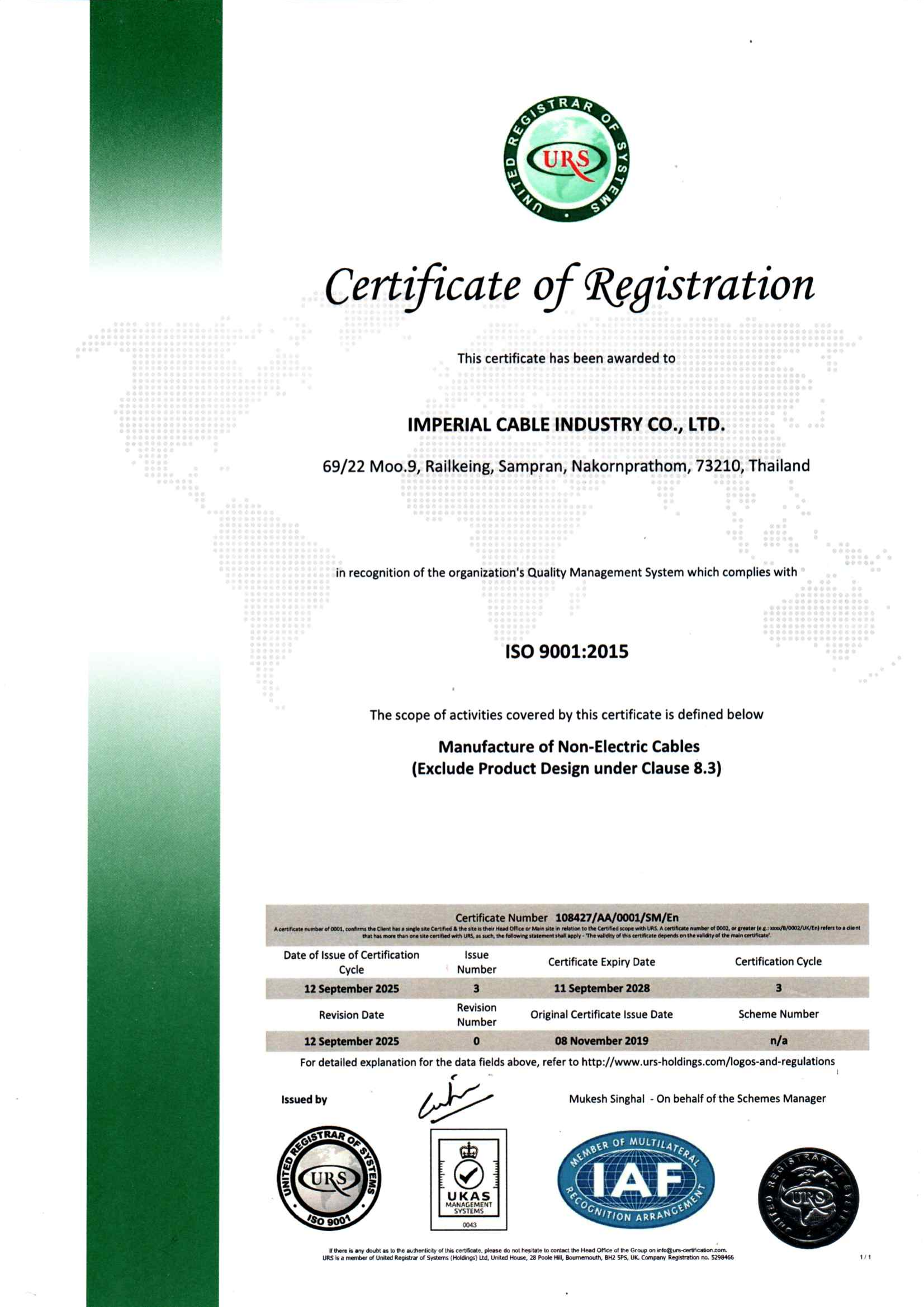 Over the years, Imperial Cable Industry has been continually developing and improving our management system and production process. With our philosophy, our company is dedicated to developing effective production system to ensure the consistency of quality in our products. An implementation of ISO/TS16949:2009 and ISO9001:2008 demonstrates a strong commitment to quality and customer satisfaction.
