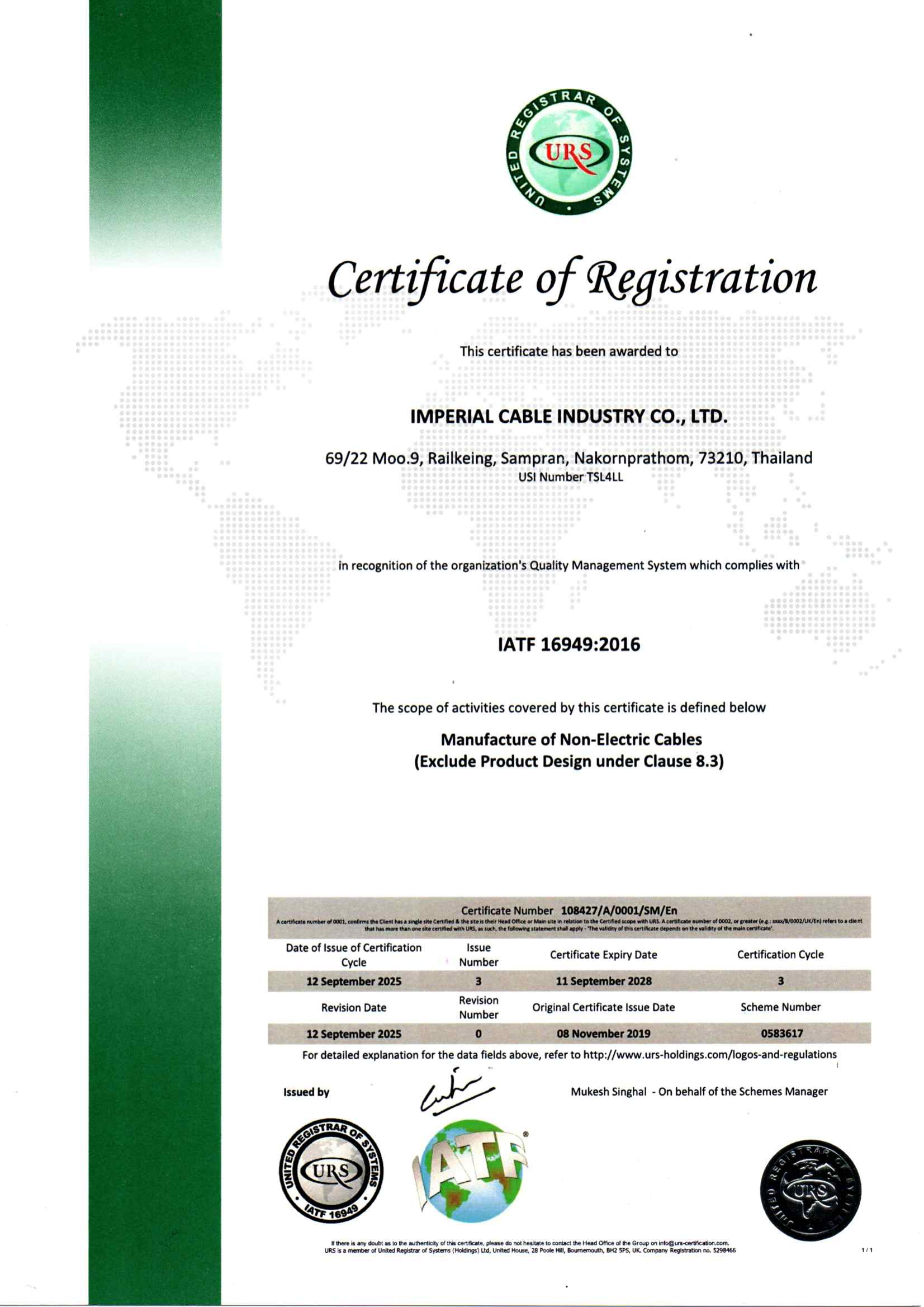 Over the years, Imperial Cable Industry has been continually developing and improving our management system and production process. With our philosophy, our company is dedicated to developing effective production system to ensure the consistency of quality in our products. An implementation of ISO/TS16949:2009 and ISO9001:2008 demonstrates a strong commitment to quality and customer satisfaction.